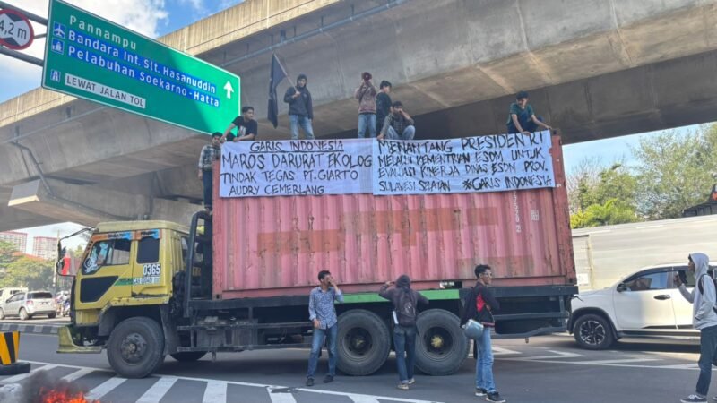 Kaukusnews.id, Makassar — Puluhan massa yang tergabung dalam Garis Indonesia kembali menggelar aksi demonstrasi di depan Kantor Dinas Energi dan Sumber Daya Mineral (ESDM) Provinsi Sulawesi Selatan. Makassar, Kamis (11/12/25).