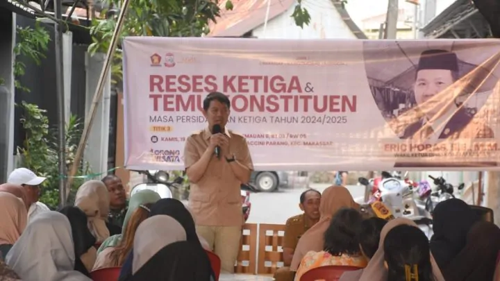 Demikian disampaikan Eric saat menggelar reses ketiga masa persidangan ketiga tahun sidang 2024-2025 di Jalan Kemauan 6 RT 03 RW 05, Kelurahan Maccini Parang, Kecamatan Makassar, Kamis, 19 Juni 2025.